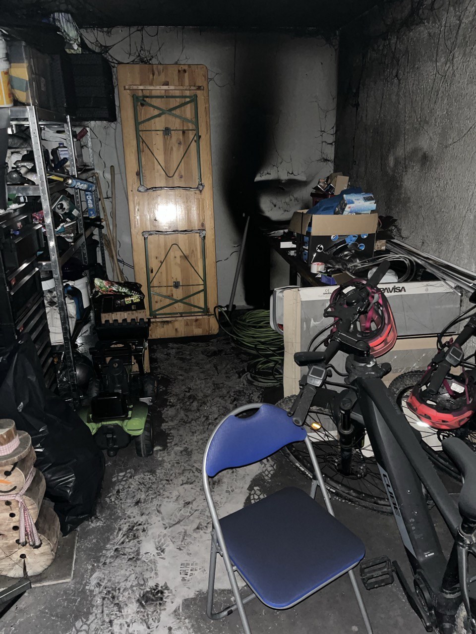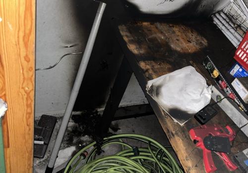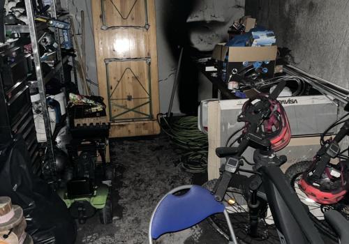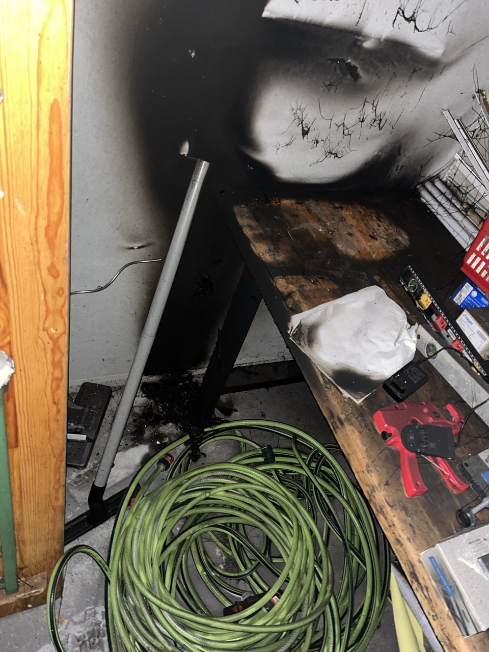 Die Einsatzkräfte gingen mittels zwei C-Rohren zur Erkundung in das Gebäude vor. Bei der ersten Erkundung zeigte sich, dass kein offenes Feuer mehr vorhanden war. Offensichtlich war ein Akku eines Gartengeräts vollständig ausgebrannt.