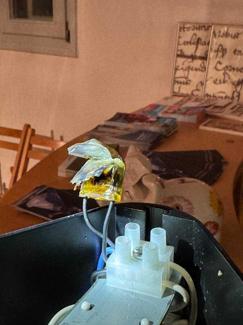 Das Gebäude wurde anschließend mittels Wärmebildkameras durch mehrere Trupps überprüft. Als Auslösegrund konnte ein verschmorter Kondensator eines Halogenscheinwerfers festgestellt werden. Der betroffene Scheinwerfer wurde demontiert.