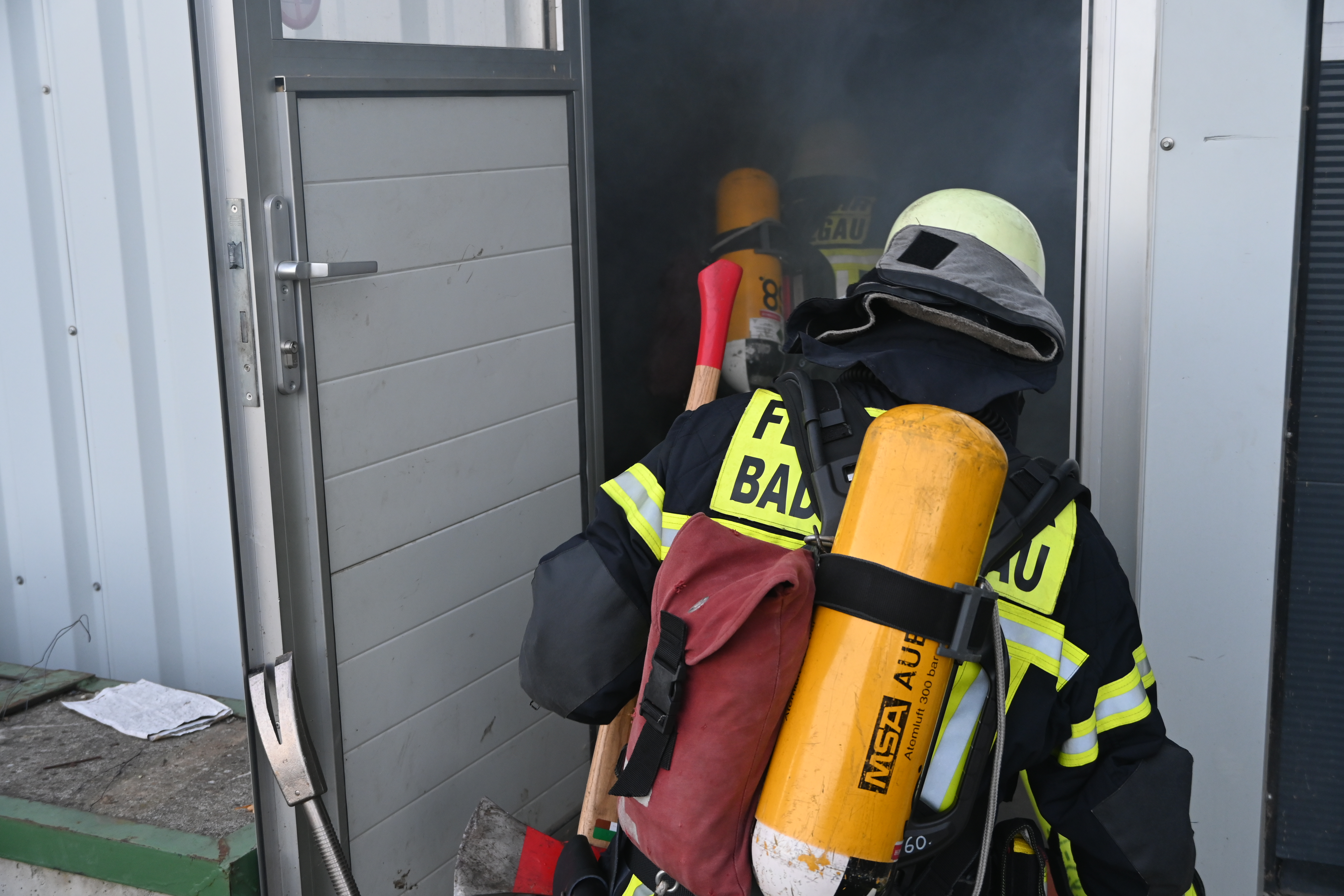 Unter Atemschutz verschaffte sich der erste Trupp Zugang zum Schuppen, um die Ursache der Verrauchung zu lokalisieren. Parallel wurde die Wasserversorgung über einen Unterflurhydranten sichergestellt, während ein zweiter Trupp die angrenzende Hacke sowie die Fahrzeuge schützte.